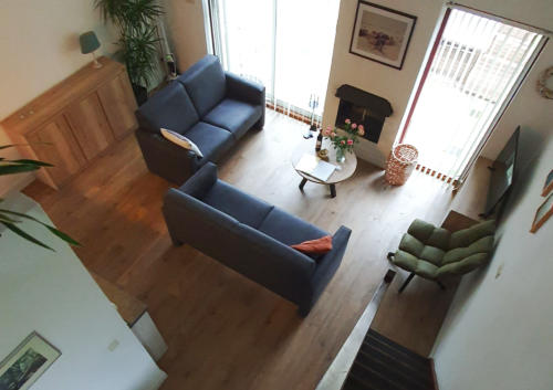 Op de begane grond bevindt zich de woonkamer met een schuifpui naar het terras.