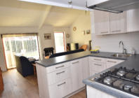 Im Erdgeschoss liegt das Wohnzimmer mit Schiebetür zur Terrasse und die offene Küche,