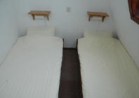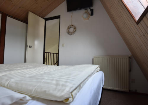 Auf der 1. Etage befinden sich 2 Schlafzimmer, eins mit 2 Bockspringbetten,
