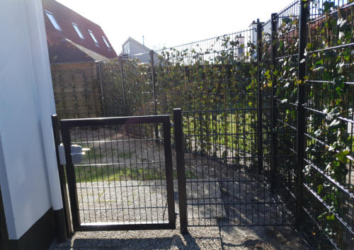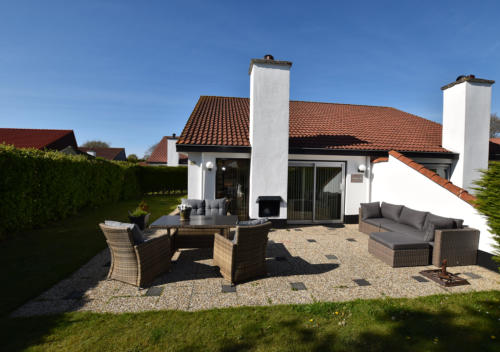 Auf der Terrasse, im geschützten eingezäunter Garten befinden sich bequeme Stühle.